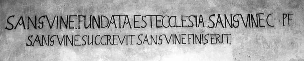 SANGVINE. FVNDATA EST ECCLESIA SANGVINE C(HRISTUS) P(ER)F(ICIT).